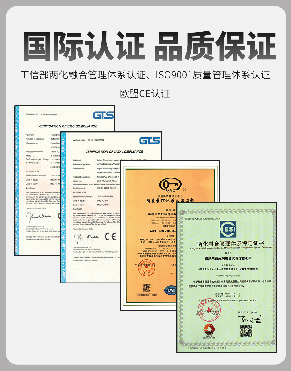 虹潤公司是專業(yè)生產(chǎn)PLC控制器的國家專精特新“小巨人”企業(yè)。生產(chǎn)的簡易PLC中文一體機,具有全中文編程,專業(yè)邏輯控制與時間控制,全隔離設計,遠程RS485通訊監(jiān)測等特點。產(chǎn)品獲得智能化控制器、多通道可編程繼電器等2項國家發(fā)明專利;主持起草流程工業(yè)中電氣/儀表和控制系統(tǒng)的試車國家標準,通信系統(tǒng)多通道數(shù)據(jù)采集控制終端規(guī)范軍用標準,以及現(xiàn)場設備集成等5項智能制造國家標準,參與國際5G標準制定,取得中文可編程繼電器等2項相關(guān)軟件著作權(quán)。產(chǎn)品廣泛應用于實驗室、市政工程、農(nóng)業(yè)養(yǎng)殖、包裝機械、食品行業(yè)、樓宇自控等諸多領(lǐng)域。