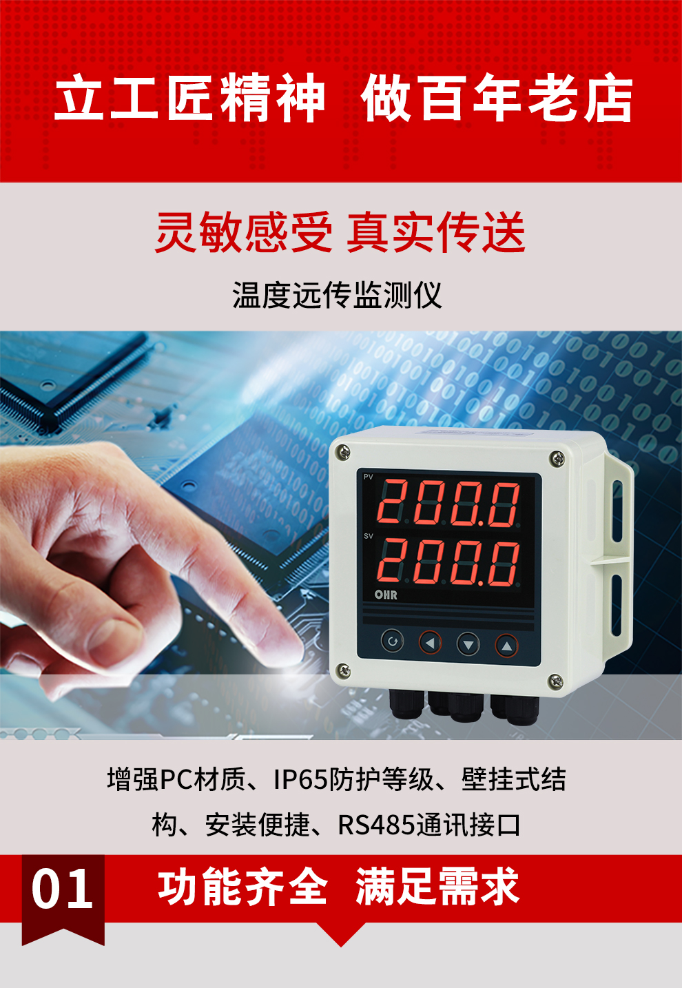 虹潤公司是專業(yè)生產(chǎn)多路溫度巡檢儀的國家專精特新“小巨人”企業(yè),生產(chǎn)的溫度遠(yuǎn)傳監(jiān)測儀,具有兩路PT100信號輸入,壁掛式結(jié)構(gòu),IP65防護(hù)等級,高抗干擾,帶RS485通訊輸出等特點(diǎn)。產(chǎn)品獲得巡回檢測顯示方法及裝置、儀表殼體等2項(xiàng)國家發(fā)明專利,主持起草工業(yè)過程控制系統(tǒng)用模擬輸入兩位或多位輸出儀表、物聯(lián)網(wǎng)智能溫度儀表通用技術(shù)條件等2項(xiàng)國家標(biāo)準(zhǔn)以及通信系統(tǒng)多通道數(shù)據(jù)采集控制終端規(guī)范軍用標(biāo)準(zhǔn),參與國際5G標(biāo)準(zhǔn)制定,取得雙路回路溫度遠(yuǎn)傳監(jiān)測儀等2項(xiàng)相關(guān)軟件著作權(quán)。產(chǎn)品廣泛應(yīng)用于電力、石化、冶金、制藥、水處理、機(jī)械配套等各種工業(yè)現(xiàn)場。