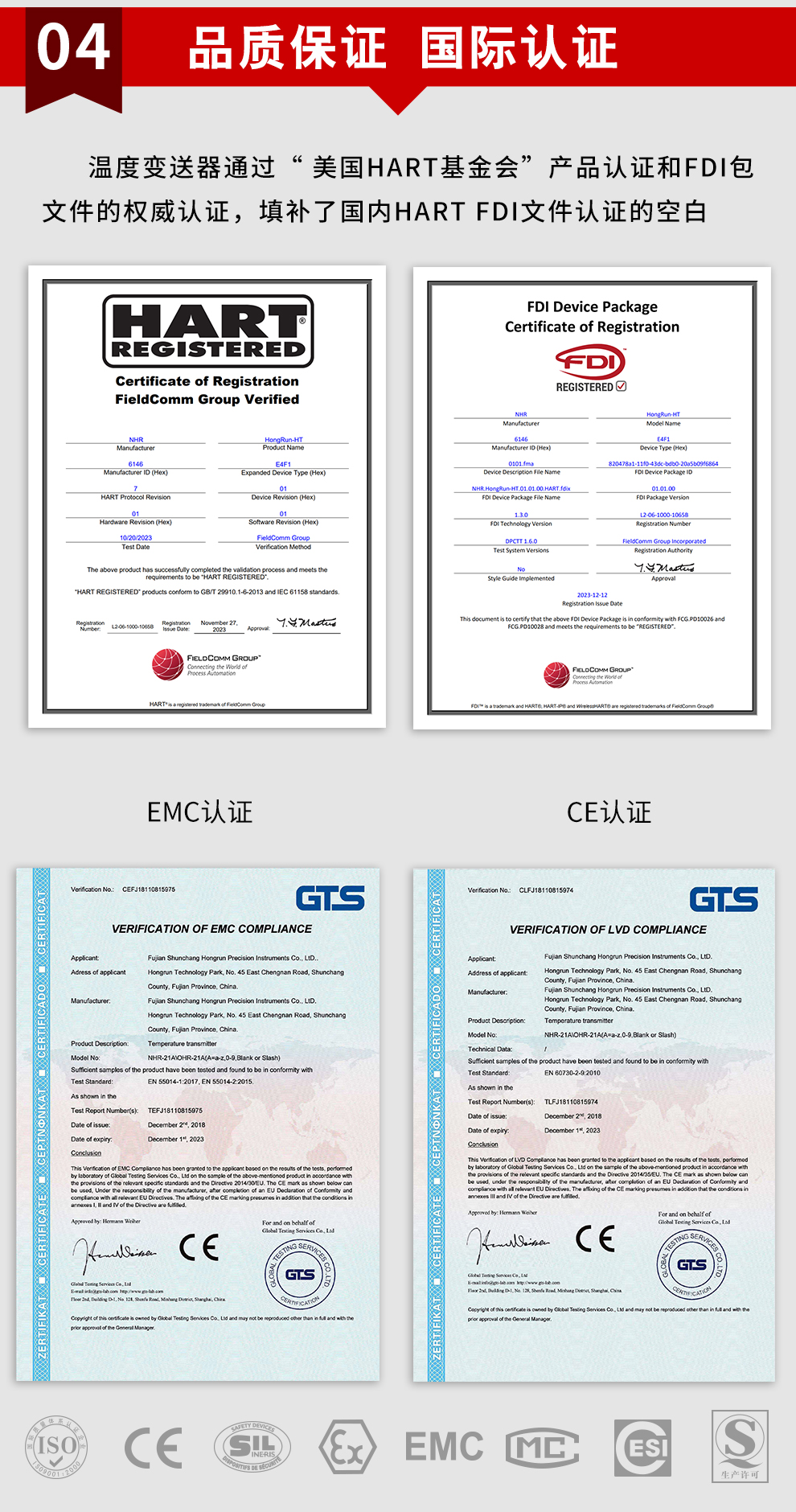虹潤公司是專業(yè)生產(chǎn)溫度變送器的國家專精特新“小巨人”企業(yè)。生產(chǎn)的現(xiàn)場顯示隔離溫度變送器,具有可修改輸入信號類型,測量精度高,穩(wěn)定性好,帶HART或RS485通訊計等特點(diǎn)。該產(chǎn)品不僅通過德國萊茵 CE 認(rèn)證與 SIL 功能安全認(rèn)證,還獲得具備減震抗干擾能力的溫度變送器、信號隔離器、一種二端子模塊、無源信號隔離器等3項國家發(fā)明專利。主持起草物聯(lián)網(wǎng)智能溫度儀表、現(xiàn)場設(shè)備工具(FDT)接口規(guī)范、工業(yè)過程測量和控制系統(tǒng)用溫度變送器等3項國家標(biāo)準(zhǔn),以及通信系統(tǒng)多通道數(shù)據(jù)采集控制終端規(guī)范軍用標(biāo)準(zhǔn)。參與國際5G標(biāo)準(zhǔn)制定,取得高精度溫度變送器等3項相關(guān)軟件著作權(quán)。產(chǎn)品廣泛應(yīng)用于石油、化工、電力、冶金、制藥、食品、水處理等各種工業(yè)領(lǐng)域。
