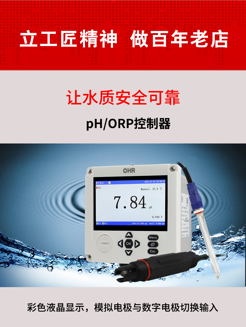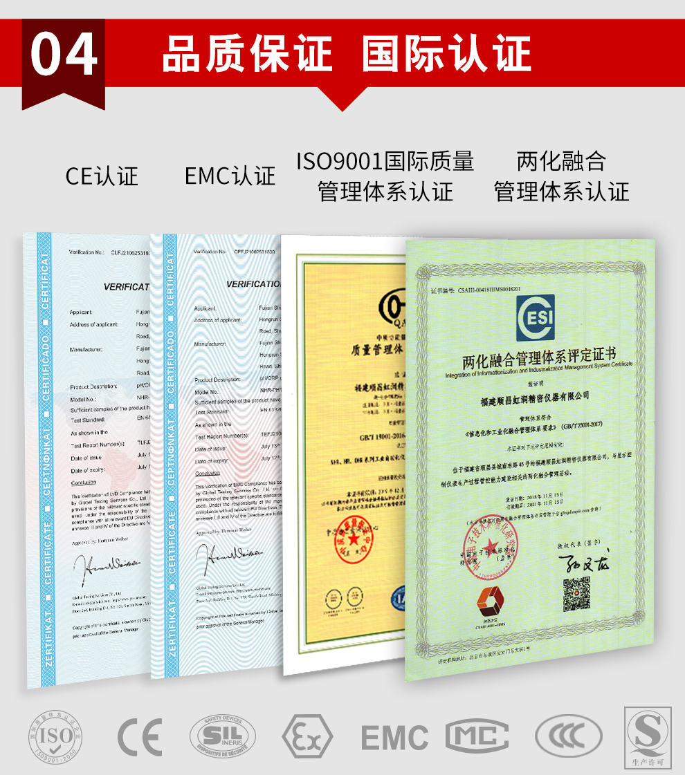 虹潤(rùn)公司是專(zhuān)業(yè)生產(chǎn)水質(zhì)分析儀的國(guó)家專(zhuān)精特新“小巨人”企業(yè)。生產(chǎn)的pH/ORP控制器,具有模擬電極與數(shù)字電極切換輸入、測(cè)量精準(zhǔn)穩(wěn)定不跳字,RS485/以太網(wǎng)通訊,配套上位機(jī)管理軟件等特點(diǎn)。產(chǎn)品獲得一種適應(yīng)性強(qiáng)PH控制儀、一種平板無(wú)紙記錄儀、智能化控制器等3項(xiàng)國(guó)家發(fā)明專(zhuān)利;主持起草物聯(lián)網(wǎng)智能記錄儀表通用技術(shù)條件、現(xiàn)場(chǎng)設(shè)備工具(FDT)接口規(guī)范、過(guò)程分析技術(shù)系統(tǒng)等3項(xiàng)國(guó)家標(biāo)準(zhǔn),以及通信系統(tǒng)多通道數(shù)據(jù)采集控制終端規(guī)范軍用標(biāo)準(zhǔn),參與國(guó)際5G標(biāo)準(zhǔn)制定,取得PH無(wú)紙記錄儀等4項(xiàng)相關(guān)軟件著作權(quán)。產(chǎn)品廣泛應(yīng)用于實(shí)驗(yàn)室、水處理、環(huán)境監(jiān)測(cè)、食品、制藥、農(nóng)業(yè)、工業(yè)流程控制等諸多領(lǐng)域。