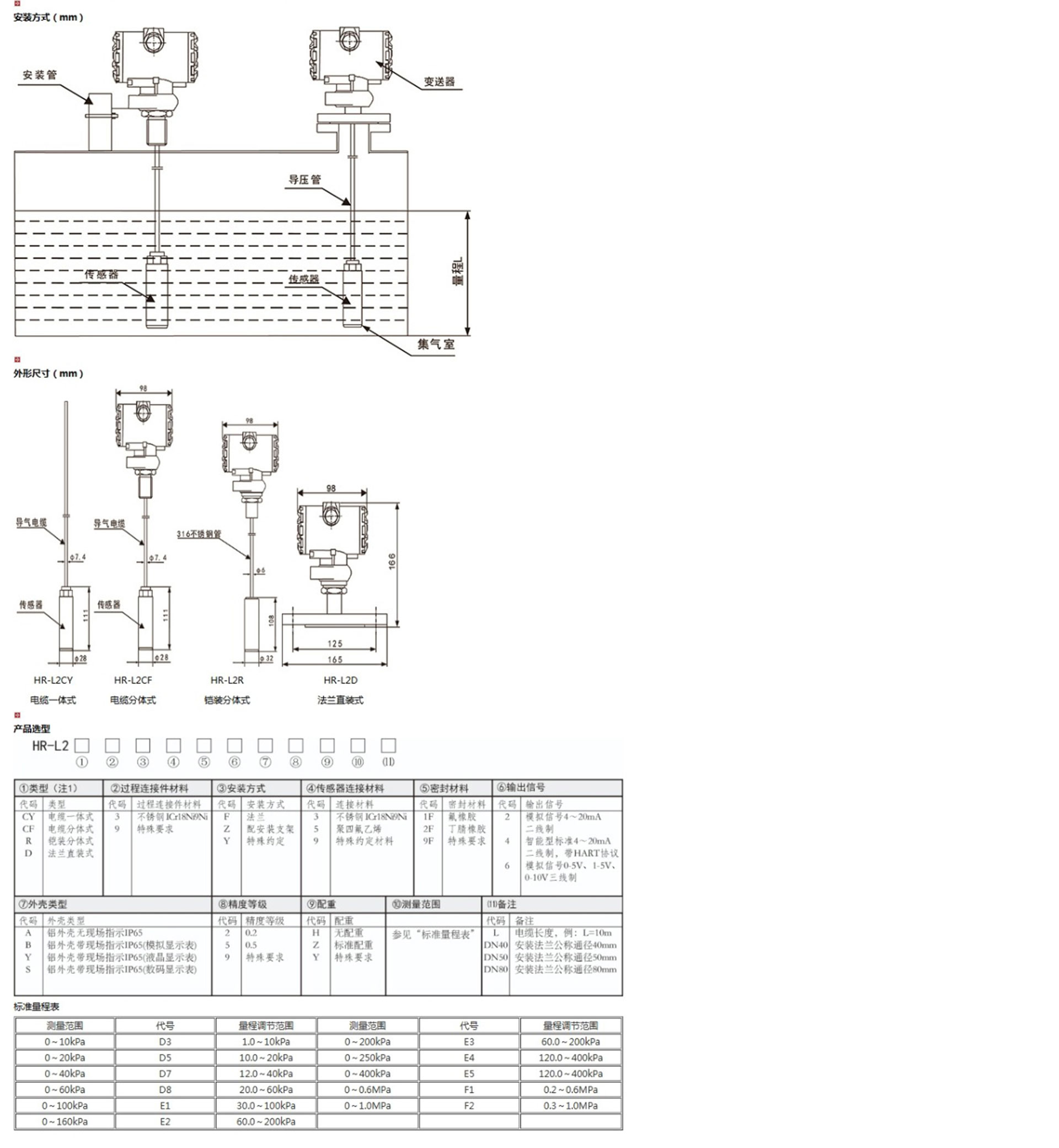 HR-L系列靜壓液位變送器使用進口高精度、高穩(wěn)定性擴散硅壓力敏感芯片,通過高可靠性的放大電路,將被測液體的液位信號轉(zhuǎn)換成4~20mA DC標準信號。