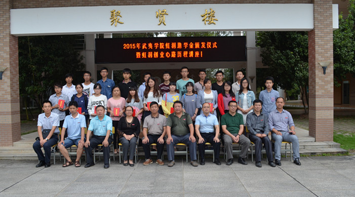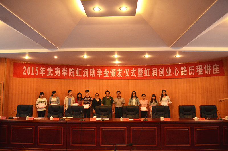 姚進(jìn)生、林善平等與會(huì)領(lǐng)導(dǎo)為獲得虹潤(rùn)助學(xué)金的同學(xué)頒發(fā)了證書(shū)。林善平用自己的創(chuàng)業(yè)歷程告訴同學(xué)們要尊重自我,在暫時(shí)的逆境中砥礪品格,磨練意志,用自己的努力不斷增長(zhǎng)知識(shí)和才干,在以后的人生歷程中選擇更輝煌的道路。
