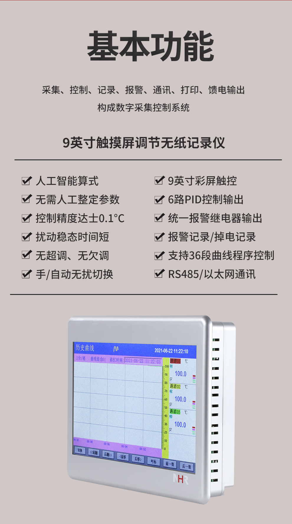 虹潤公司是專業(yè)生產(chǎn)無紙記錄儀的國家專精特新“小巨人”企業(yè)。生產(chǎn)的觸摸屏調(diào)節(jié)無紙記錄儀,具有觸摸大屏顯示,真正人工智能算式,無需人工整定參數(shù),控制精度達(dá)士0.1°C,數(shù)據(jù)記錄與轉(zhuǎn)存, RS485/以太網(wǎng)通訊,5/7/9英寸可選等特點。產(chǎn)品獲得智能化控制器、人工智能調(diào)節(jié)器及調(diào)節(jié)方法、模糊PID控制儀及控制方法、平板無紙記錄儀、巡回檢測顯示方法及裝置等5項國家發(fā)明專利,主持起草物聯(lián)網(wǎng)智能記錄儀表通用技術(shù)條件、物聯(lián)網(wǎng)智能溫度儀表通用技術(shù)條件、工業(yè)過程測量和控制系統(tǒng)用智能調(diào)節(jié)器等3項國家標(biāo)準(zhǔn),通信系統(tǒng)多通道數(shù)據(jù)采集控制終端規(guī)范軍用標(biāo)準(zhǔn),以及空間數(shù)據(jù)與信息數(shù)據(jù)傳輸系統(tǒng)等2項航天標(biāo)準(zhǔn),參與國際5G標(biāo)準(zhǔn)制定,取得觸摸屏彩色調(diào)節(jié)無紙記錄儀等3項相關(guān)軟件著作權(quán)。產(chǎn)品廣泛應(yīng)用于電力、石化、冶金、化工、食品、制藥、熱處理、水處理、機械配套等諸多領(lǐng)域。