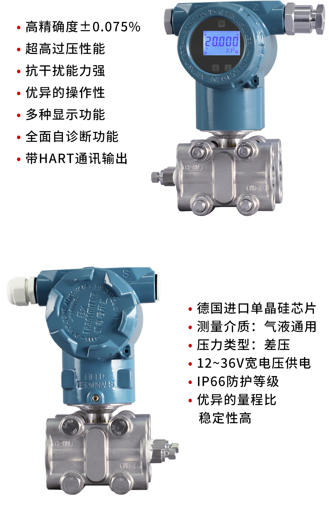 HR-3051F1單晶硅差壓變送器