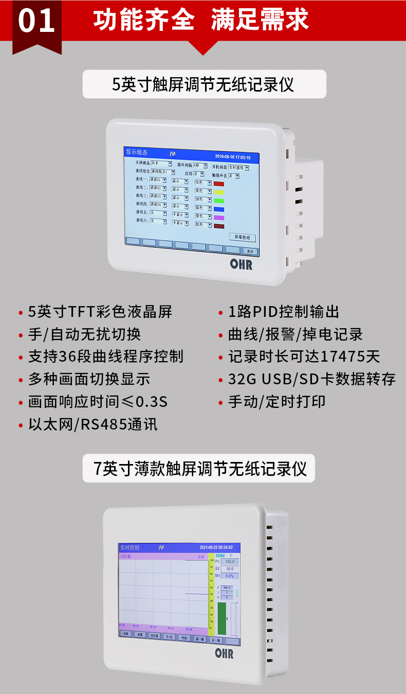 OHR-T系列觸摸屏調(diào)節(jié)無紙記錄儀