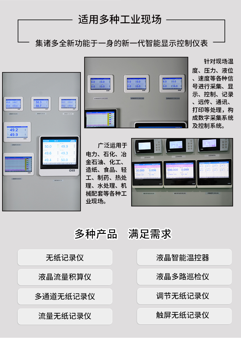 虹潤公司是專業(yè)生產(chǎn)無紙記錄儀的國家專精特新“小巨人”企業(yè)。生產(chǎn)的觸摸屏調(diào)節(jié)無紙記錄儀,具有觸摸大屏顯示,真正人工智能算式,無需人工整定參數(shù),控制精度達士0.1°C,數(shù)據(jù)記錄與轉存, RS485/以太網(wǎng)通訊,5/7/9英寸可選等特點。產(chǎn)品獲得智能化控制器、人工智能調(diào)節(jié)器及調(diào)節(jié)方法、模糊PID控制儀及控制方法、平板無紙記錄儀、巡回檢測顯示方法及裝置等5項國家發(fā)明專利,主持起草物聯(lián)網(wǎng)智能記錄儀表通用技術條件、物聯(lián)網(wǎng)智能溫度儀表通用技術條件、工業(yè)過程測量和控制系統(tǒng)用智能調(diào)節(jié)器等3項國家標準,通信系統(tǒng)多通道數(shù)據(jù)采集控制終端規(guī)范軍用標準,以及空間數(shù)據(jù)與信息數(shù)據(jù)傳輸系統(tǒng)等2項航天標準,參與國際5G標準制定,取得觸摸屏彩色調(diào)節(jié)無紙記錄儀等3項相關軟件著作權。產(chǎn)品廣泛應用于電力、石化、冶金、化工、食品、制藥、熱處理、水處理、機械配套等諸多領域。