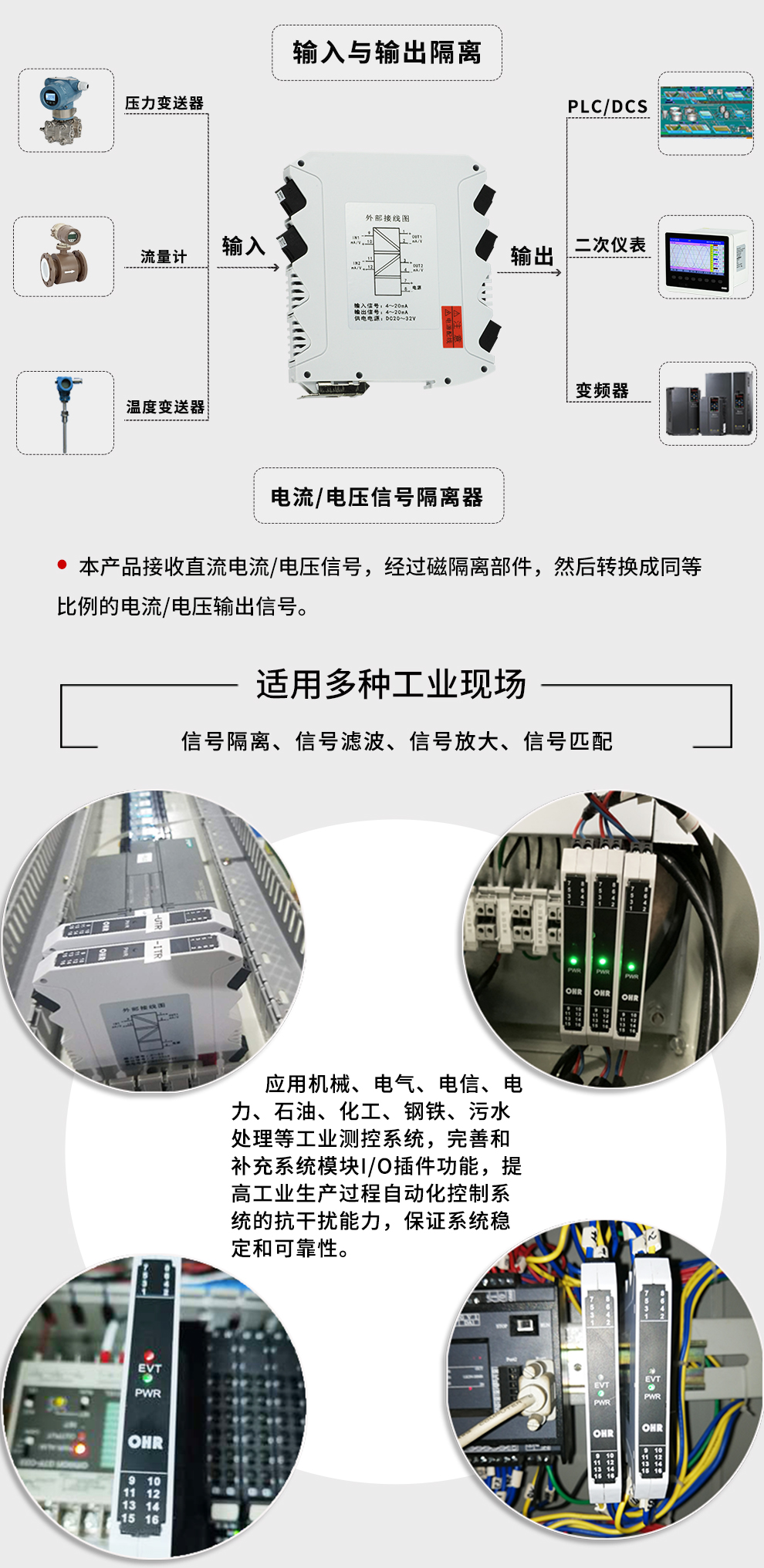 虹潤公司是專業(yè)生產(chǎn)隔離器的國家專精特新“小巨人”企業(yè)。生產(chǎn)的信號隔離器,具有采用磁隔離技術(shù),直流電壓/電流輸入,響應時間快,抗干擾能力強,性價比高等特點。該產(chǎn)品不僅通過德國萊茵 CE 認證與 SIL 功能安全認證,還獲得信號隔離器、二端子模塊、無源信號隔離器等3項國家發(fā)明專利,主持起草現(xiàn)場設備工具(FDT)接口規(guī)范、工業(yè)過程測量和控制系統(tǒng)用隔離式安全柵、工業(yè)過程測量和控制系統(tǒng)用配電器等3項國家標準,以及通信系統(tǒng)多通道數(shù)據(jù)采集控制終端規(guī)范軍用標準,參與國際5G標準制定。產(chǎn)品廣泛應用于石油、電力、化工,冶金、制藥、污水處理、窯爐控制等各種需要電隔離的工業(yè)現(xiàn)場。