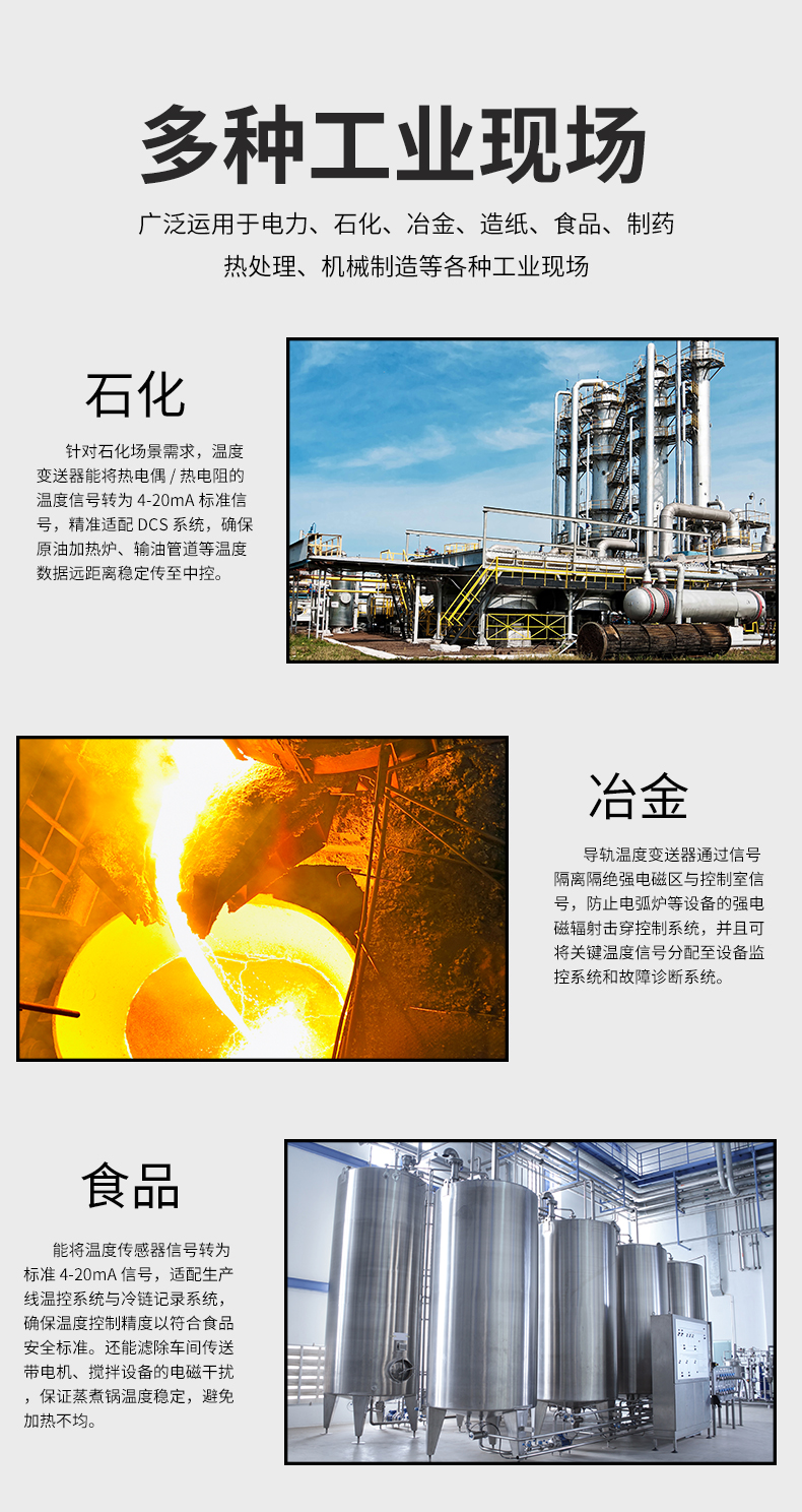 虹潤公司是專業(yè)生產(chǎn)溫度變送器的國家專精特新“小巨人”企業(yè)。生產(chǎn)的溫度變送器,具有采用磁隔離技術(shù),配套編程器可修改參數(shù),抗干擾能力強,穩(wěn)定性好,帶RS485或HART通訊等特點。該產(chǎn)品不僅通過HART基金會認證、德國萊茵 CE 認證與 SIL 功能安全認證,還獲得具備減震抗干擾能力的溫度變送器、信號隔離器、一種二端子模塊、無源信號隔離器等4項國家發(fā)明專利,主持起草物聯(lián)網(wǎng)智能溫度儀表、現(xiàn)場設(shè)備工具(FDT)接口規(guī)范、工業(yè)過程測量和控制系統(tǒng)用溫度變送器等3項國家標(biāo)準(zhǔn),以及通信系統(tǒng)多通道數(shù)據(jù)采集控制終端規(guī)范軍用標(biāo)準(zhǔn),參與國際5G標(biāo)準(zhǔn)制定,取得溫度變送器等5項相關(guān)軟件著作權(quán)。產(chǎn)品廣泛應(yīng)用于石油、電力、化工,冶金、制藥、紡織、橡膠制造等工業(yè)領(lǐng)域現(xiàn)場自動化測溫過程。