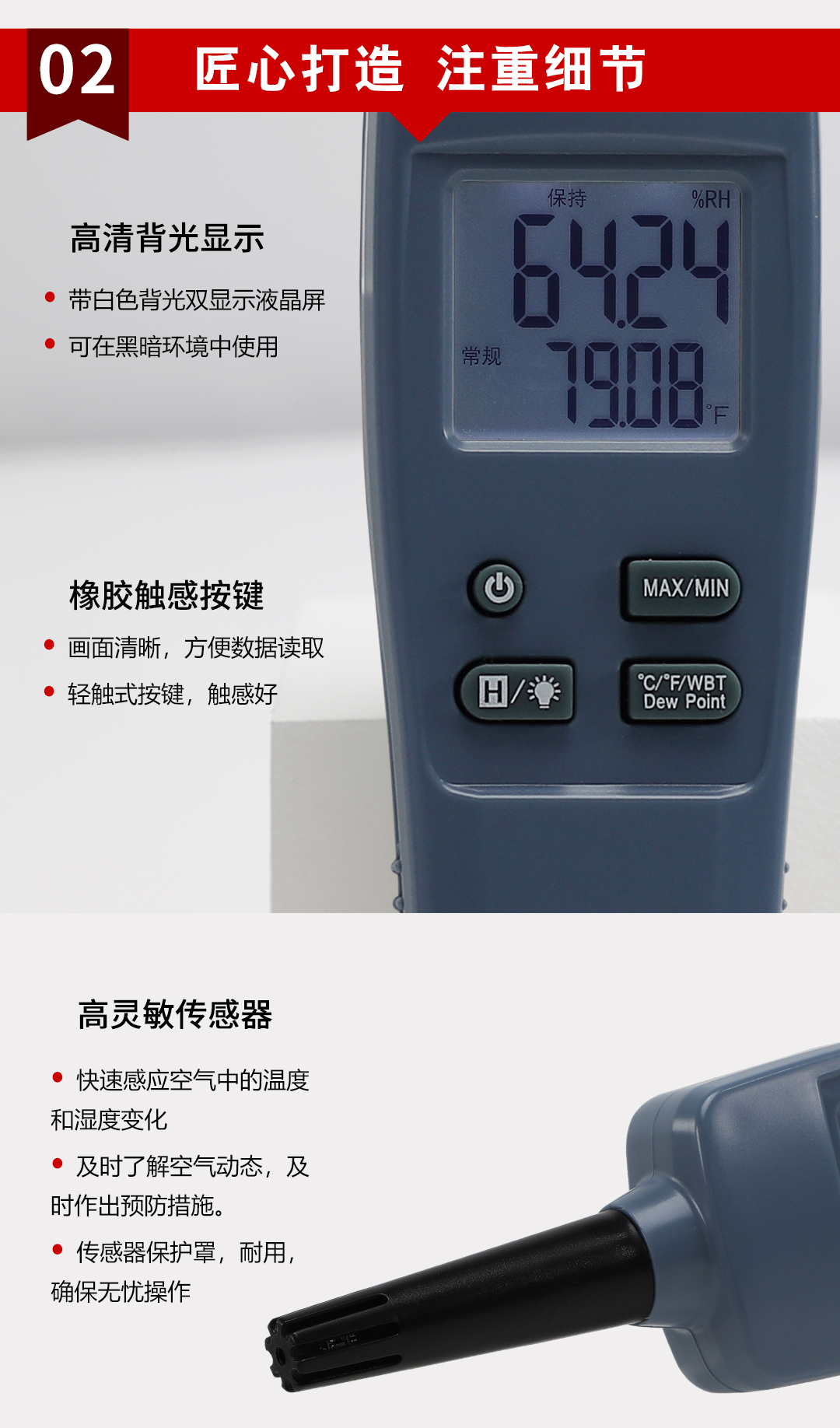 虹潤公司是專業(yè)生產(chǎn)環(huán)境監(jiān)測儀表的國家專精特新“小巨人”企業(yè)。生產(chǎn)的手持式溫濕度檢測儀,具有測量精度高,多參數(shù)測量,最大最小值記錄,小巧便捷、低功耗省電設計等特點。產(chǎn)品獲得一種手持式低功耗溫濕度檢測儀、大屏幕溫濕度記錄儀等2項國家發(fā)明專利,主持起草物聯(lián)網(wǎng)智能溫度儀表通用技術條件、冷鏈溫度記錄儀等2項國家標準,以及通信系統(tǒng)多通道數(shù)據(jù)采集控制終端規(guī)范軍用標準,以及現(xiàn)場設備集成等5項智能制造國家標準,參與國際5G標準制定,取得環(huán)境溫濕度測試儀等3項相關軟件著作權。產(chǎn)品廣泛應用于實驗室、博物館、農(nóng)業(yè)大棚、生產(chǎn)車間、倉庫、配電機房等諸多領域。