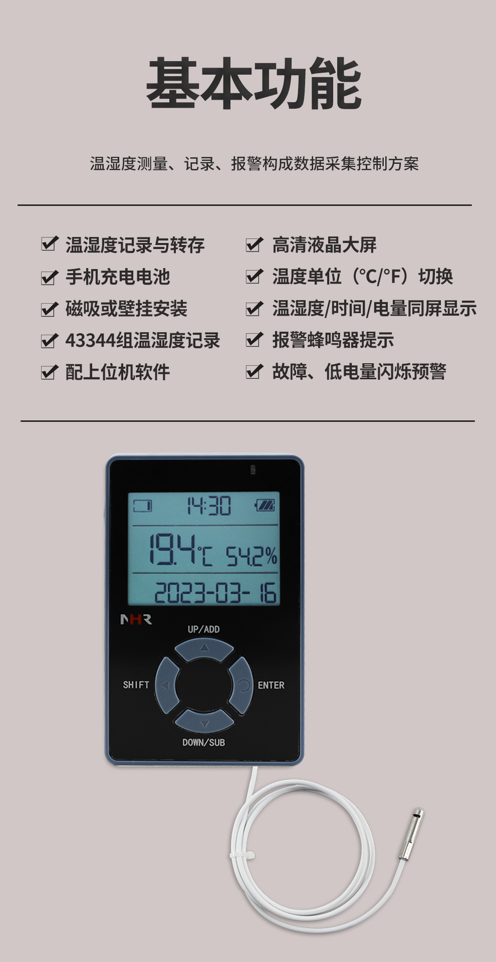 虹潤(rùn)公司是專業(yè)生產(chǎn)環(huán)境監(jiān)測(cè)儀表的國(guó)家專精特新“小巨人”企業(yè)。生產(chǎn)的便攜式溫濕度記錄儀,具有溫濕度記錄與轉(zhuǎn)存,手機(jī)充電電池,磁吸或壁掛安裝,故障報(bào)警提示,配上位機(jī)軟件等特點(diǎn)。產(chǎn)品獲得一種手持式低功耗溫濕度檢測(cè)儀、無(wú)紙記錄儀等2項(xiàng)國(guó)家發(fā)明專利,主持起草物聯(lián)網(wǎng)智能溫度儀表通用技術(shù)條件、冷鏈溫度記錄儀等2項(xiàng)國(guó)家標(biāo)準(zhǔn),通信系統(tǒng)多通道數(shù)據(jù)采集控制終端規(guī)范軍用標(biāo)準(zhǔn),以及現(xiàn)場(chǎng)設(shè)備集成等5項(xiàng)智能制造國(guó)家標(biāo)準(zhǔn),參與國(guó)際5G標(biāo)準(zhǔn)制定,取得便攜式溫濕度記錄儀等3項(xiàng)相關(guān)軟件著作權(quán)。產(chǎn)品廣泛應(yīng)用于冷鏈運(yùn)輸、醫(yī)藥冷庫(kù)、藥品陰涼柜、實(shí)驗(yàn)室、機(jī)房倉(cāng)庫(kù)、養(yǎng)殖孵化、大棚種植等諸多領(lǐng)域。