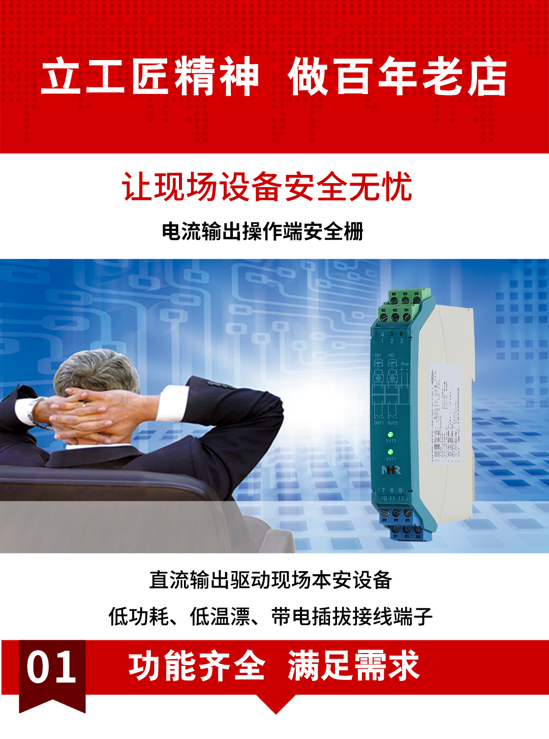 虹潤(rùn)公司是專業(yè)生產(chǎn)隔離器的國家專精特新“小巨人”企業(yè)。生產(chǎn)的電壓/電流輸出操作端隔離柵涵蓋信號(hào)電壓輸入、電流輸入、開關(guān)量輸入等多種產(chǎn)品類型。產(chǎn)品獲得具備減震抗干擾能力的溫度變送器、信號(hào)隔離器、一種二端子模塊、無源信號(hào)隔離器等4項(xiàng)國家發(fā)明專利,主持起草物聯(lián)網(wǎng)智能溫度儀表、現(xiàn)場(chǎng)設(shè)備工具(FDT)接口規(guī)范、工業(yè)過程測(cè)量和控制系統(tǒng)用溫度變送器等3項(xiàng)國家標(biāo)準(zhǔn),以及通信系統(tǒng)多通道數(shù)據(jù)采集控制終端規(guī)范軍用標(biāo)準(zhǔn)。參與國際5G標(biāo)準(zhǔn)制定,取得智能隔離式安全柵等4項(xiàng)相關(guān)軟件著作權(quán)。產(chǎn)品廣泛應(yīng)用于石油、電力、化工,冶金、智能制造、污水處理等諸多行業(yè)。