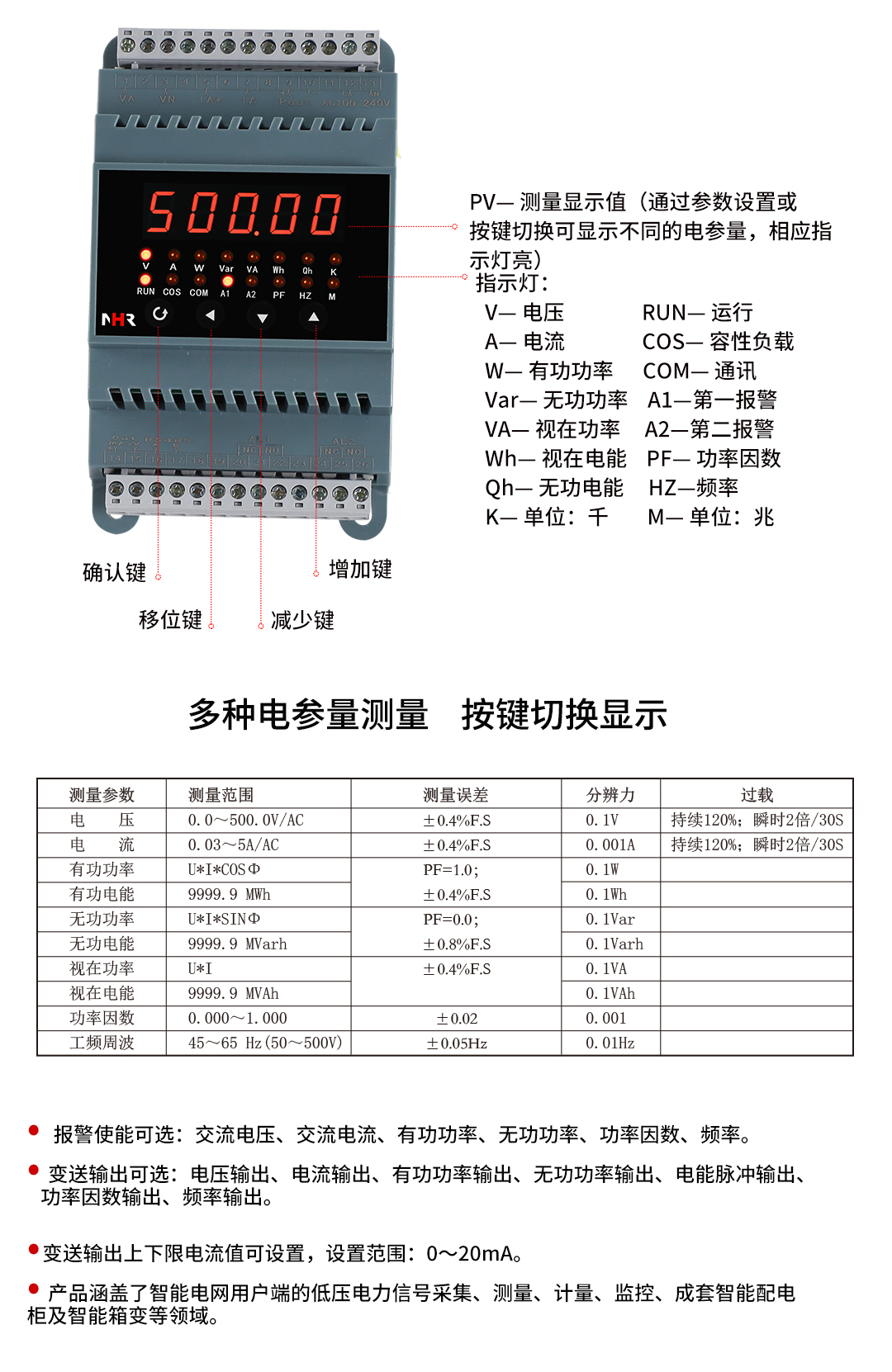 虹潤公司是專業(yè)生產(chǎn)電流傳感器的國家專精特新“小巨人”企業(yè)。生產(chǎn)的單相電量變送器,具有多種電參數(shù)測(cè)量,有功無功電能累積,高抗干擾,導(dǎo)軌壁掛共用, RS485/RS232通訊等特點(diǎn)。產(chǎn)品獲得基于一種交流信號(hào)變送器、交直流信號(hào)轉(zhuǎn)換電路、基于DCS技術(shù)的盤裝式三相電量表等3項(xiàng)國家發(fā)明專利,主持起草工業(yè)過程控制系統(tǒng)用模擬輸入兩位或多位輸出儀表國家標(biāo)準(zhǔn),直流漏電流傳感器規(guī)范、通信系統(tǒng)多通道數(shù)據(jù)采集控制終端規(guī)范等2項(xiàng)軍用標(biāo)準(zhǔn),以及現(xiàn)場(chǎng)設(shè)備集成等5項(xiàng)智能制造國家標(biāo)準(zhǔn),參與國際5G標(biāo)準(zhǔn)制定,取得單相電量儀表等2項(xiàng)相關(guān)軟件著作權(quán)。產(chǎn)品廣泛應(yīng)用于電力、冶金、化工、水泥、造紙、新能源、基礎(chǔ)設(shè)施等用電密集行業(yè)。